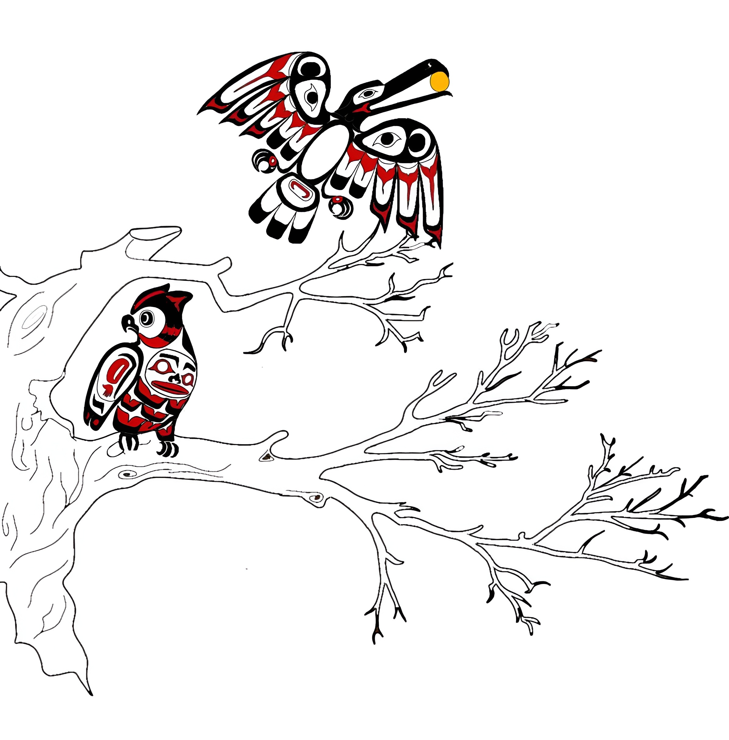 Owl with Raven Stealing the Sun: Transition to Night